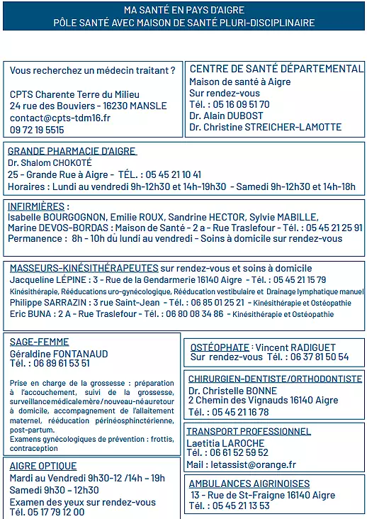 Vous trouverez ci-joint un tableau des différents praticiens de l’établissement et leurs coordonnées.