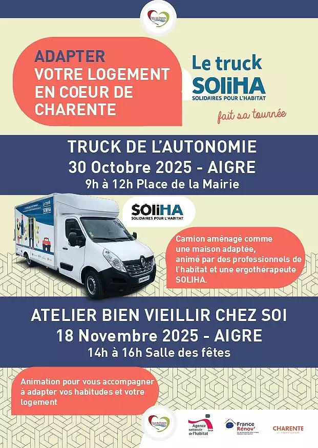 Adapter votre logement en coeur de Charente. Le truck de l’autonomie est animé par des professionnels de l’habitat et une ergothérapeute SOLIHA.